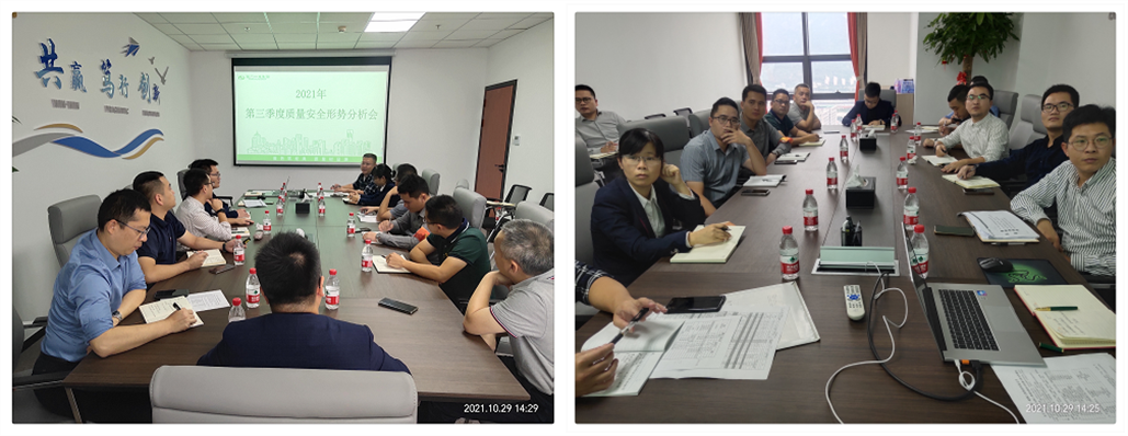 2021年10月29日,集團 “2021年第三季度質量安全形勢分析會”在福州總部召開!集團總經理黃茂文先生、常務副總經理潘德誠先生及集團副總經理王永遠先生攜集團各部門負責人和項目經理參會。會議聚焦2021年第三季度的項目管理工作,針對項目管控中存在的問題進行了總結分析,對完善項目部與公司各部門協同工作機制進行了充分的探討,并對下一季度工作重點進行了部署。